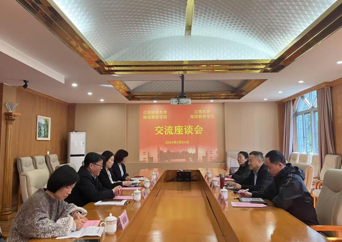 3月20日上午,江南大学欧美性爱 院长兼终身教育处处长王育红、副院长周伟等一行三人来院调研。院党总支书记杨尚勇、副院长兰芳及相关科室负责人出席座谈,座谈会由杨尚勇主持。